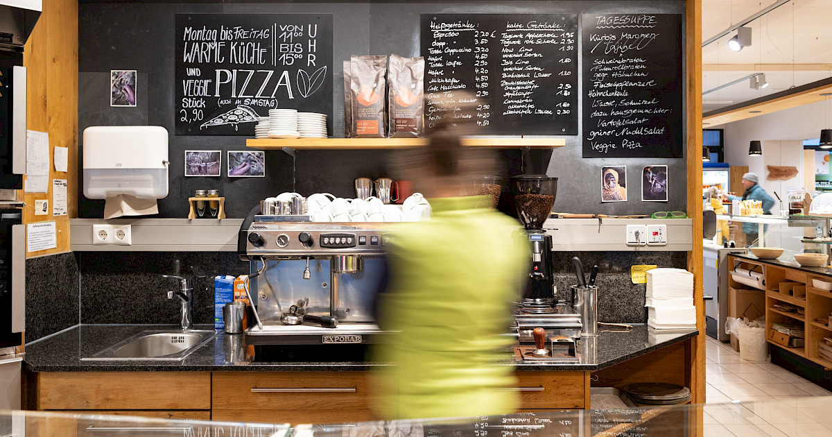 Zu unseren Suppen gibt’s natürlich auch noch richtig guten Kaffee – frisch gebrüht und in Bio-Qualität. Außerdem gibt es feines Gebäck und ofenfrisches Brot von regionalen Bäckereien, die ihr Handwerk verstehen. Ob zum Frühstück, zur Mittagspause oder einfach so: Bei uns trifft ehrlicher Genuss auf entspannte Bistro-Atmosphäre.
